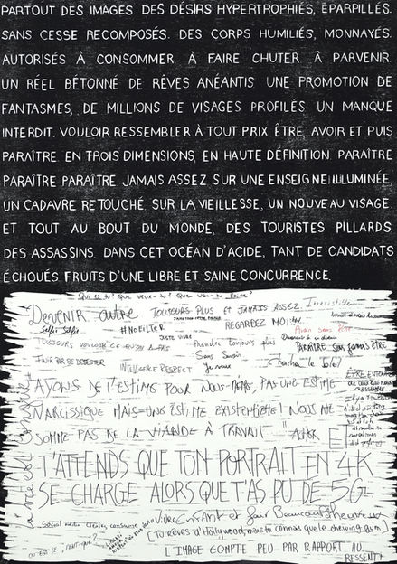 La série 7 péchés du capitalisme interroge une société à bout de souffle par le prisme intemporel des péchés capitaux. En plaçant leur installation performance à l’échelle d’une ville, Camille Dufour et Rafaël Klepfisch renouent avec les origines de la gravure comme moyen de reproduction et de communication populaire. Ce projet d’affichage urbain destine des centaines de gravures originales à être complétées ou emportées par les passants. Chaque péché – imprimé en cent exemplaires – est composé de deux gravures sur bois. L’une, figurée fourmillant de détails, d’ironie et de noirceur (réalisée par Camille Dufour); l’autre textuelle ( réalisée par Rafaël Klepfisch), offre un espace d'expression public. À la fois référence aux nouvelles placardées en temps de troubles sociaux et tentative d’infraction aux images dominantes, les gravures – accrochées à même les abribus, les couloirs de gares et les lieux vacants – sont une tentative de mettre l'œuvre en relation avec un autre public. Aussi, au moment où la crise du Covid nous éloigne chacun les uns des autres et où l’ère du numérique continue son essor, le projet porte l’envie de renouer avec la matérialité des échanges et la circulation d’œuvres originales.